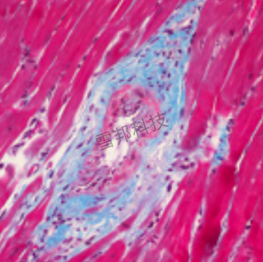 用两种或三种阴离子染料混合,原纤维呈蓝色,肌纤维呈红色。用来显示组织中纤维以及炎性因子的染色方法之一。